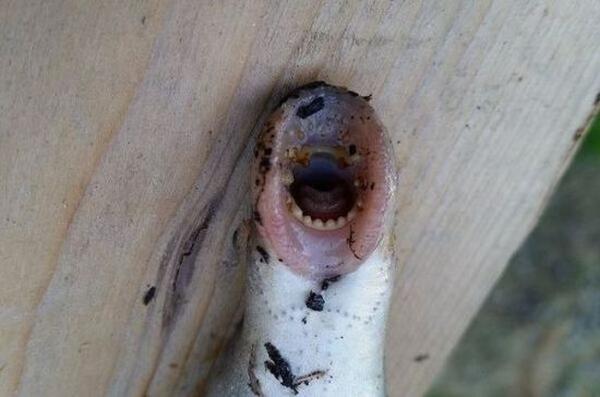 警察和生物学专家赶到现场,终于将它捕上岸!现场的专家仔细观察后,得出的结论着实让在场的每个人出乎所意料!原来,这是在英国绝迹200年之久的七鳃鳗!又被称之为“僵尸鱼”。它通常用吸盘状的口吸附在鱼身上,再用牙齿锉破鱼体,吸食其血和肉,被吸食的鱼最后只剩下一副骨架。值得一提的是,七鳃鳗在地球上已经存在了3.6亿年,出现在恐龙之前,是地球上最古老的生物之一。