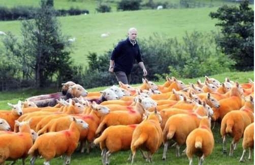 偷怕了! 一英国男子将800只羊喷成橙色