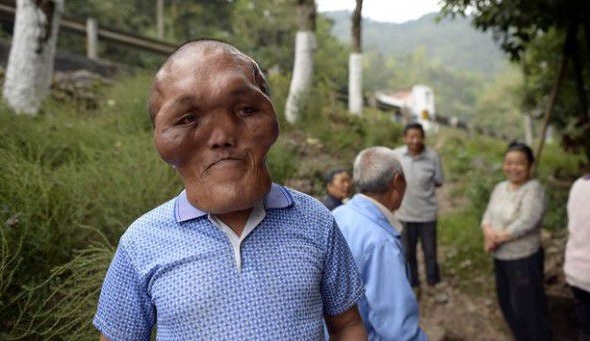 重庆53岁男子十几岁的时候头部增生致整个头肿大,大到吓人的程度,特像外星人,他没有接受任何治疗,几年后增生变形的脸,使他的听力丧失,现在几乎是个聋子。