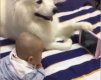 近日,在北京一户居民家,上演了暖心的一幕。画面中,小宝宝专心致志地观看着他喜爱的 动画 片,他家的萨摩犬则卧在床...